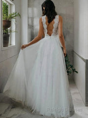 A-Line/Princess V-neck Floor-Length Tulle Wedding Dresses