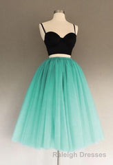 A Line Two Piece Homecoming Dresses Short Tulle Prom Gowns