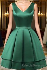 A Line V Neck Short Green Satin Prom Dresses, Short Green Satin Homecoming Graduation Dresses