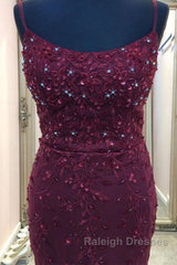 Backless Mermaid Beaded Maroon Lace Long Prom Dresses, Backless Burgundy Lace Formal Dresses, Burgundy Tulle Evening Dresses