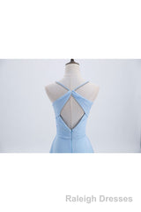 Blue Pleated Straps Chiffon Long Bridesmaid Dress