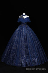 Blue Tulle Sequins Long Ball Gown, Elegant A-Line Formal Gown