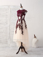 Burgundy Lace Tulle High Low Prom Dress Burgundy Bridesmaid Dress