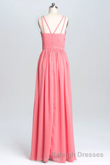 Coral Double Straps Pleated A-line Bridesmaid Dress