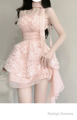 Cute A Line Spaghetti Straps Pink Chiffon Short Birthday Dresses Birthday Outfits