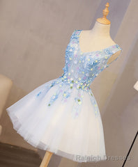 Cute Blue Lace Applique Short Prom Dress, Homecoming Dress
