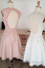 Cute round neck tulle lace short prom dress lace bridesmaid dress