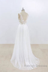 Deep V-neck Lace A-line Tulle Wedding Dress