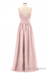 Dusty Pink Spaghetti Straps Banded Waist Long Bridesmaid Dress