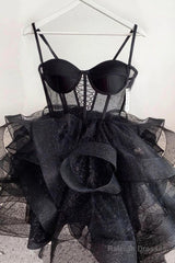 Elegant 17Th Birthday Dresses Short Black Tulle Birthday Outfits