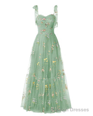 Elegant Embroidery Dark Green Prom Dresses Sweetheart Spaghetti Straps A Line Party Dress Long Simple Formal Dress