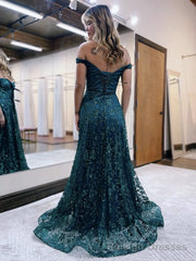 Glitter Mermaid Off The Shoulder Dark Green Long Prom Dress