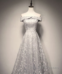 Gray tulle lace long prom dress, lace tulle bridesmaid dress