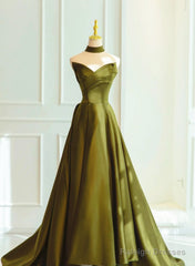 Green Satin Sweetheart Long A-Line Prom Dress Evening Dress, Green Formal Dress