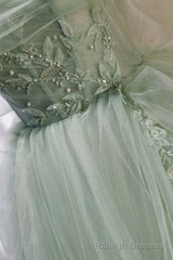 Green Sweetheart Beaded Tulle Long Prom Dress, Green Evening Dress