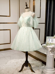 Green tulle short prom dress, green tulle homecoming dress