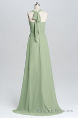 Halter Sage Pleated Ruffles Long Bridesmaid Dress