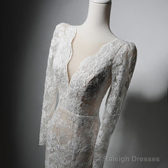 Ivory Lace Mermaid Long Sleeves Formal Dress, Lace Wedding Party Dress