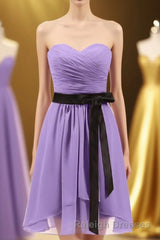 Lavender Strapless Tie-Side Short Bridesmaid Dress
