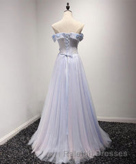 Light Blue Tulle Lace Long Prom Dress, Lace Evening Dress