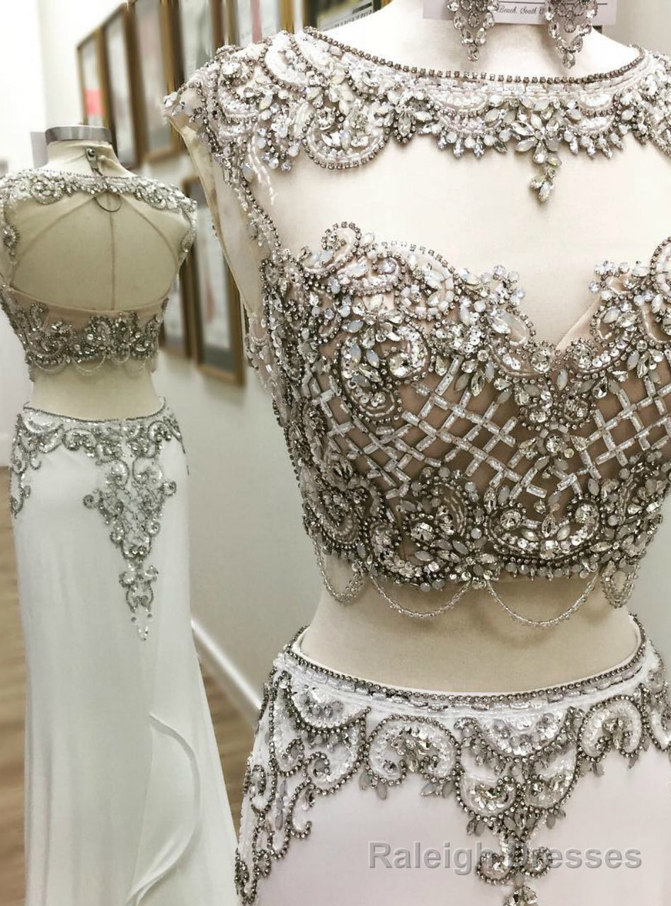 Long Mermaid White Chiffon Two Piece Backless Prom Dress