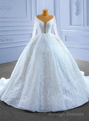 Luxury Heavy Beading Sequins Long Sleeve Wedding Dress