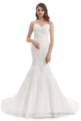 Mermaid Tulle Appliques Sequins Spaghetti Straps Wedding Dresses