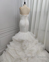 Mermaid V-neck Long Train Chiffon Lotus Leaf Hem Wedding Dress