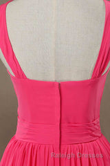 Neon Pink Halter Knee Length Bridesmaid Dress