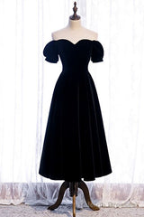 Off the Shoulder Black Velvet Party Dress