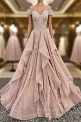 Off the Shoulder Champagne Lace Prom Dresses, Off Shoulder Champagne Lace Formal Evening Dresses