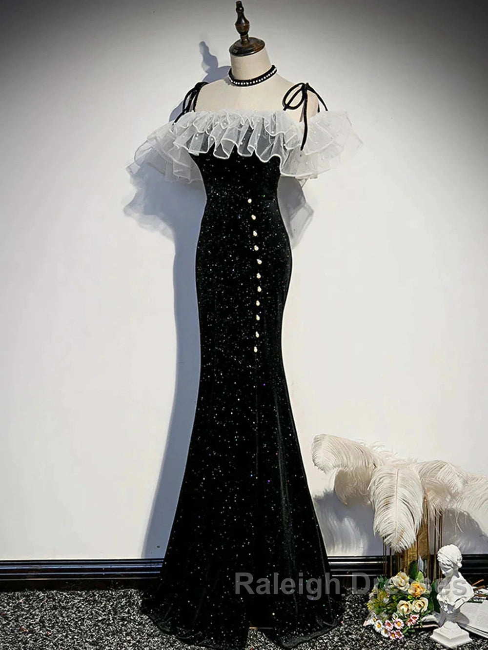 Off The Shoulder Shiny Black Mermaid Prom Dresses, Off Shoulder Shiny Black Long Formal Evening Dresses