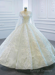 Online Store White Ball Gown Lace Appliques Long Sleeve Beading Wedding Dress