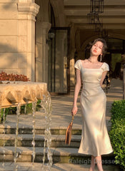 Party Midi Dresses for Women Summer Square Collar Slim Prom Female Clothes Wedding Evening Satin Dress