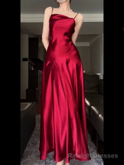 Pretty A Line Spaghetti Straps Red Satin Long Floor Length Prom Dresses