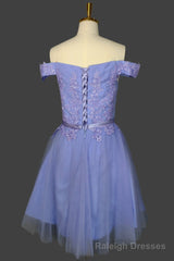 Purple Short Sleeves Lace Off Shoulder Homecoming Dresses Cute Mini Dresses