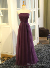 Purple Strapless Pleats Tulle Bridesmaid Dress