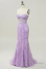 Purple Sweetheart Neck Mermaid Prom Dress With Appliques