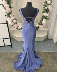 Purple V-Neck Corset Back Long Prom Dress With Appliques