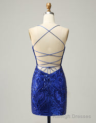 Royal Blue V-Neck Corset Back Homecoming Dress With Sequin