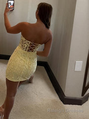 Sheath/Column Sweetheart Short/Mini Lace Homecoming Dresses