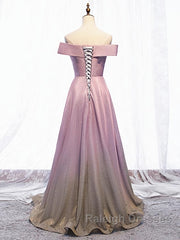 Shiny Off Shoulder Pink Ombre Prom Dresses, Pink Ombre Formal Graduation Evening Dresses