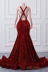 Straps Red Beading Sequin Prom Dresses Mermaid Long Party Dresses