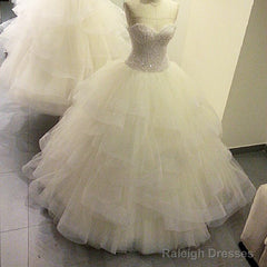 Sweetheart Ball Gown Wedding Dresses Organza Ruffles With Crystal Beaded