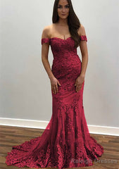 Trumpet/Mermaid Off-the-Shoulder Court Train Tulle Prom Dresses With Lace Appliqued