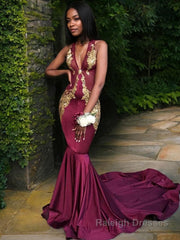 Trumpet/Mermaid V-neck Chapel Train Silk like Satin Prom Dresses
