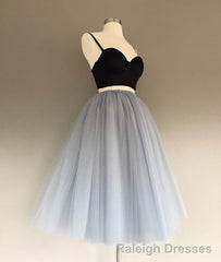 Two Pieces Black And Silver Short Sexy Spaghrtti Strap A Line Prom Dresses
