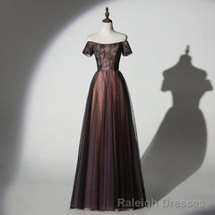 Unique Black and Champagne Tulle Long Party Dress, Senior Prom Dress