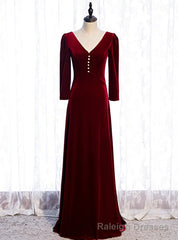V-neck Long Sleeve Velvet Burgundy Prom Dress